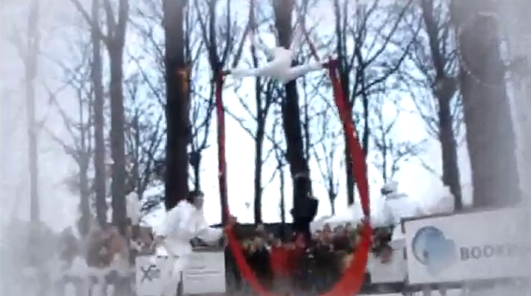 Geheel in winterse Kerst sfeer zorgt deze schaats & jongleer act voor een leuke (opening) show:
